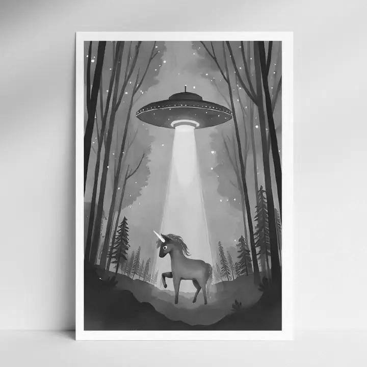 Get notified of new releases like Cryptic Paper Co. Art Print 9x12: Unicorn & UFO