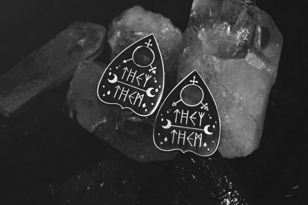 Get notified of new releases like GRRRL Spells Planchette Pronoun Pin: Gold They/Them