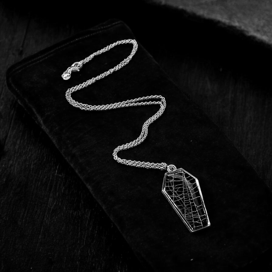 Hell Kitten RVA Pendant: Spiderweb in Silver Coffin