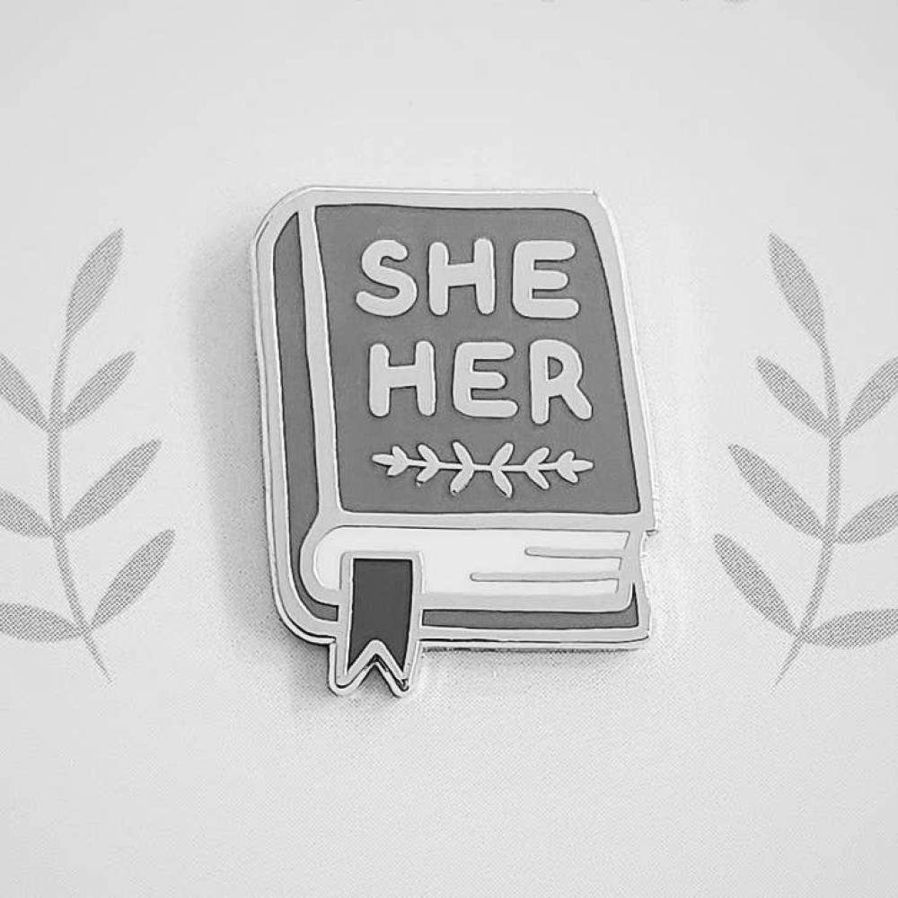 Get notified of new releases like misomomo Pronoun Book Pin: she/her
