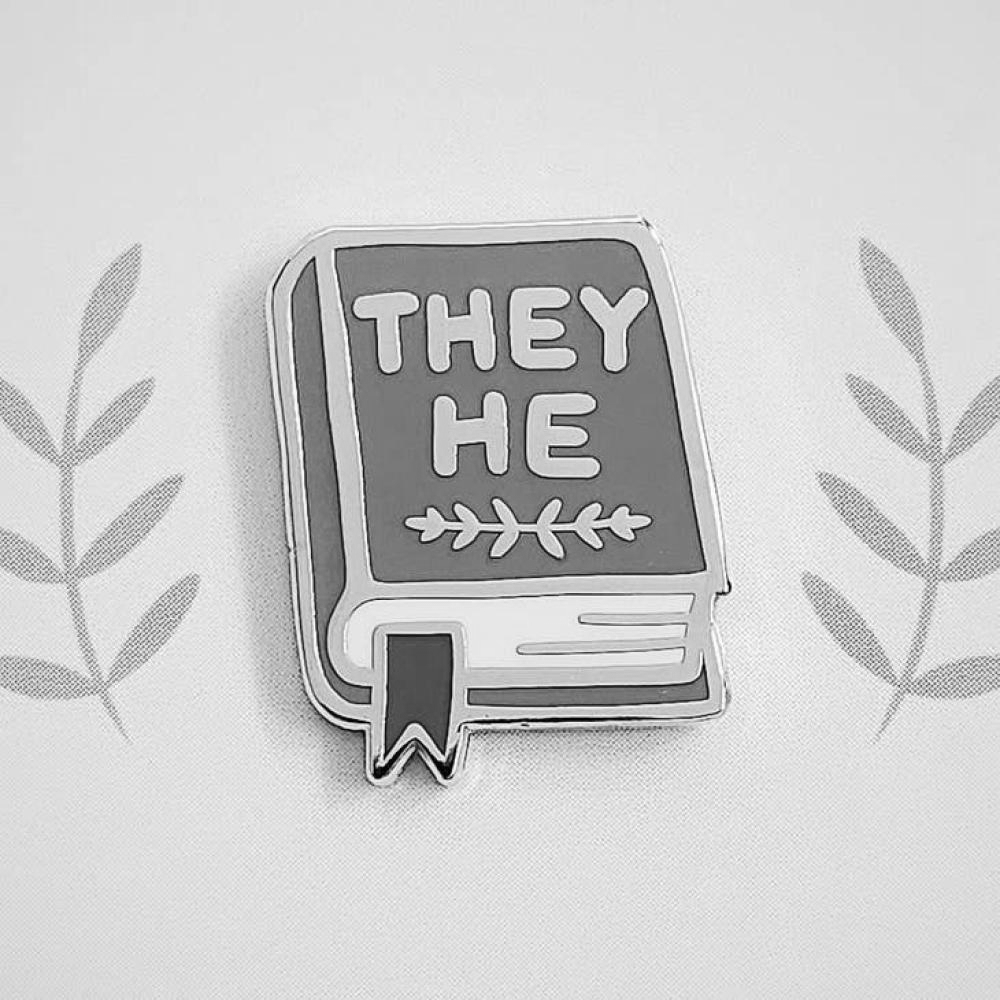 Get notified of new releases like misomomo Pronoun Book Pin: they/he