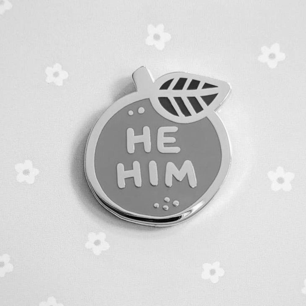 Get notified of new releases like misomomo Pronoun Orange Pin: he/him