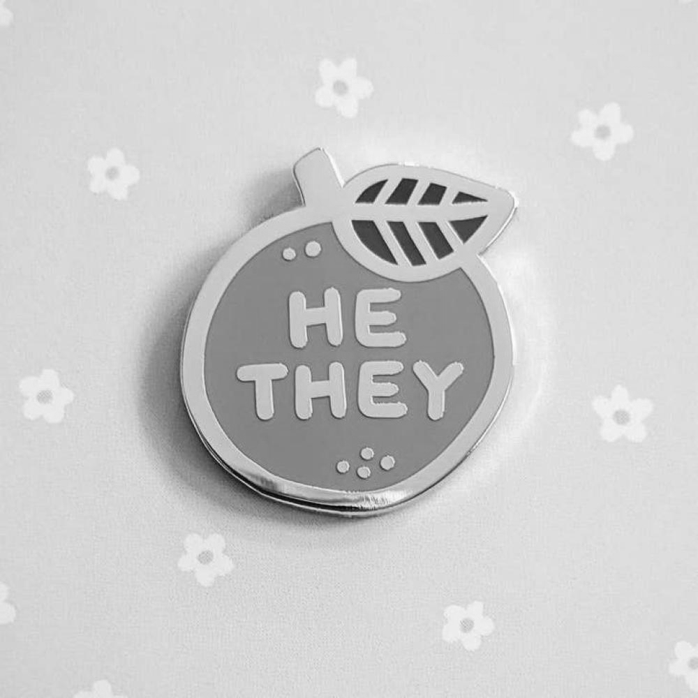 Get notified of new releases like misomomo Pronoun Orange Pin: he/they