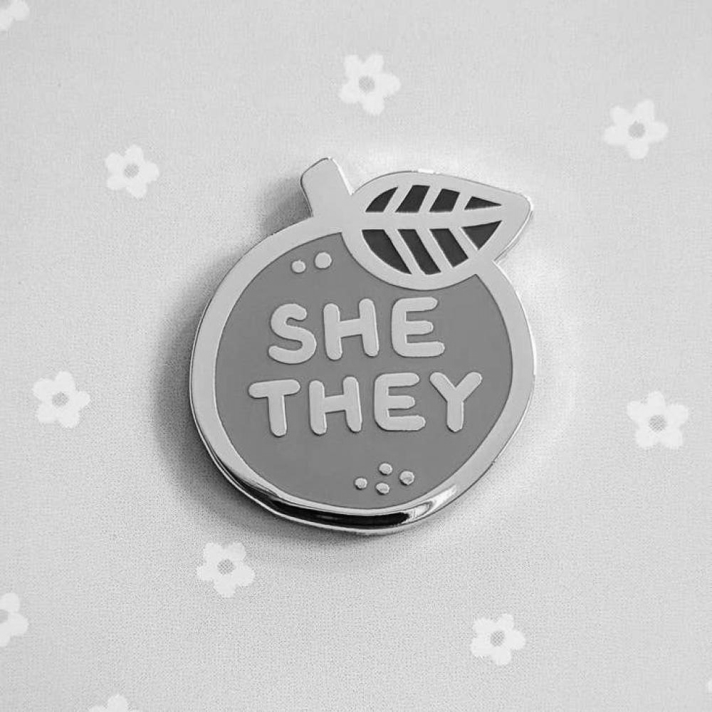 Get notified of new releases like misomomo Pronoun Orange Pin: she/they