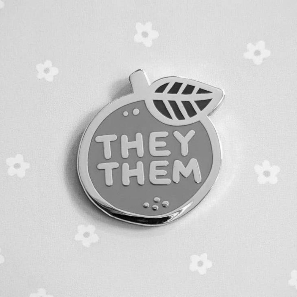 Get notified of new releases like misomomo Pronoun Orange Pin: they/them