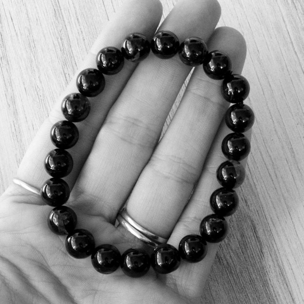 Black Tourmaline repels radiation energy and other negativity, making it a highly protective stone. It helps diminish fear. Black Tourmaline also brings a better sense of compassion and understanding. This bracelet consists of 8mm beads on a stretch cord. The beads have a shiny finish.