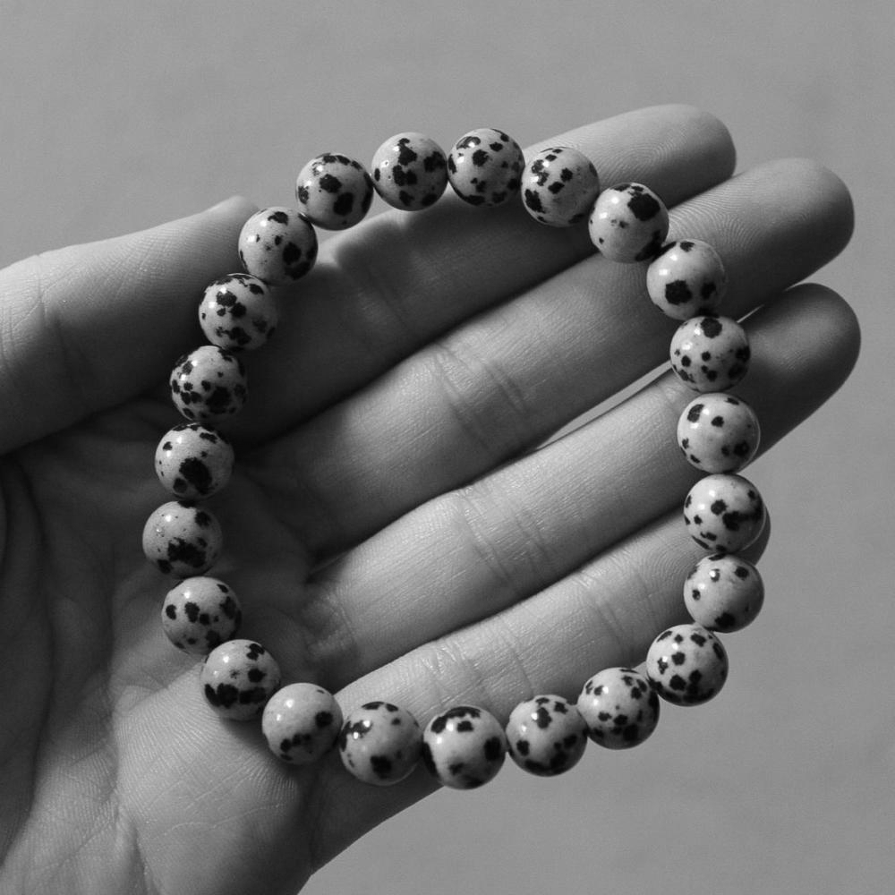 Dalmatian Jasper is helpful for those who tend to overthink/overanalyze. It has a stabilizing and grounding energy. This bracelet consists of 8mm round Dalmatian Jasper beads on a durable stretch cord.
