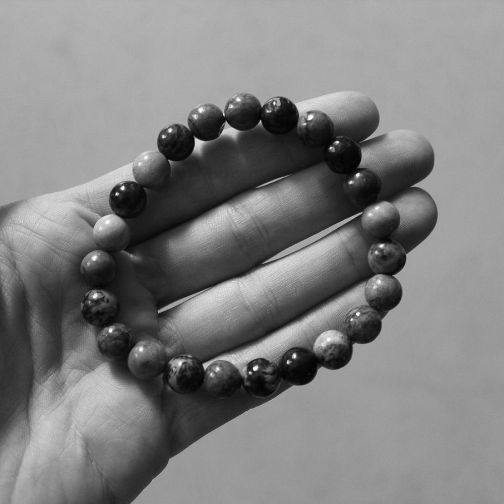 Rhodonite clears emotional trauma from the past. It inspires self-love, and can help someone remain calm in an upsetting situation. This bracelet consists of 8mm round Rhodonite beads on a durable stretch cord.