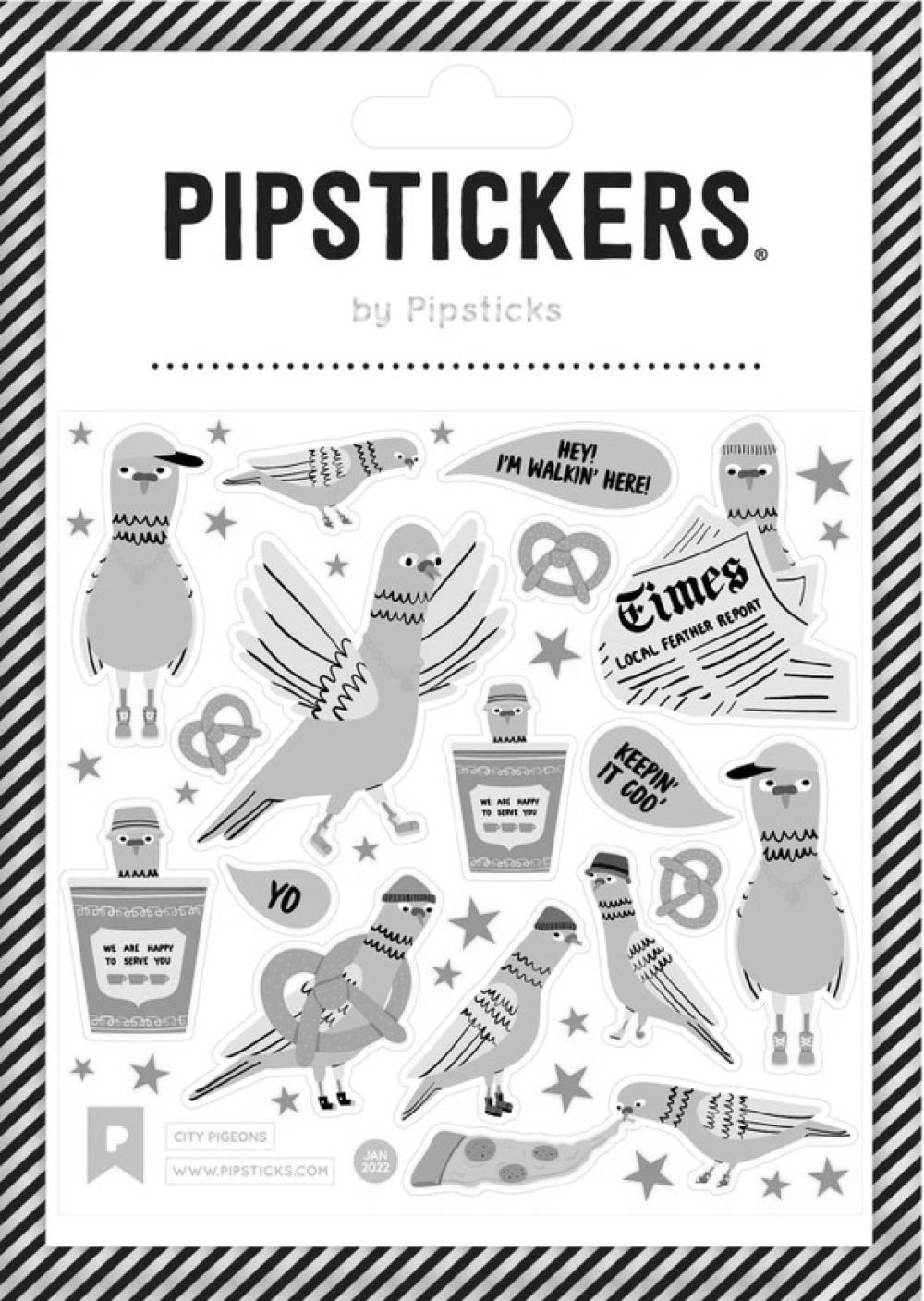 Includes one 4'' x 4'' sheet of City Pigeons PipStickers and includes the Pipsticks manifesto.