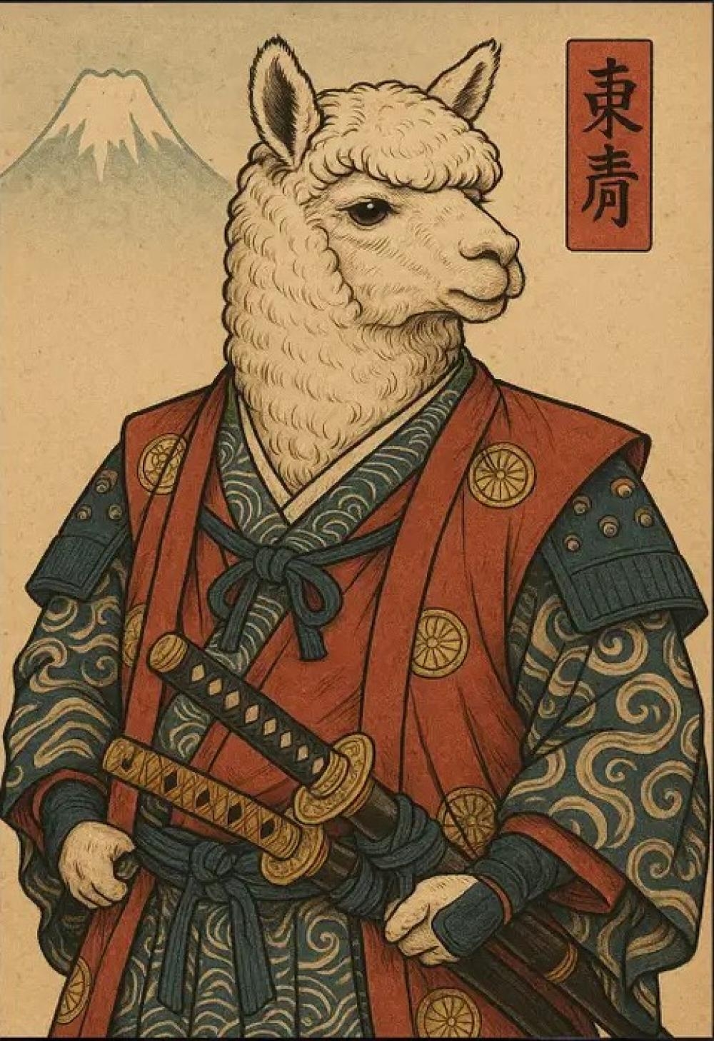 Shady Front Poster Print: Ukiyo-e Style — The Alpaca Samurai