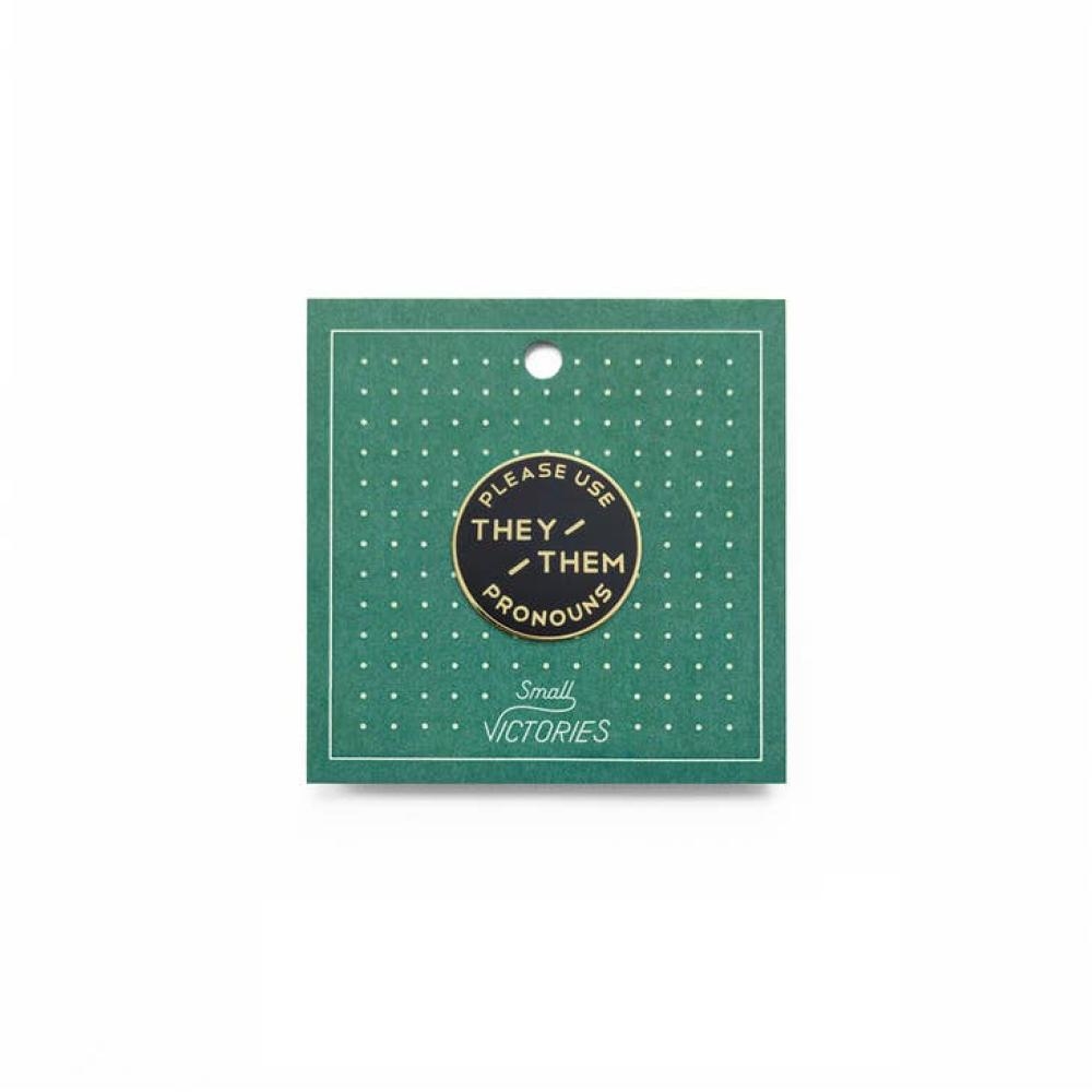 Small Victories - Black & Gold Enamel Pronoun Pin: They/Them