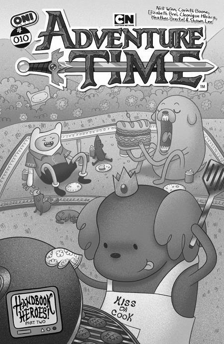 It's chaos at Hot Dog Princess's cookout! We're raising the steaks in this issue of Adventure Time from cartoonist/writer Nick Winn (Bloody Mary) and stellar artist Corinth Boone (Peony)! Finn and Jake are on a quest to create their own Enchiridion, and it's taken them to the Hot Dog Kingdom, where Robot Finn is continuing to cook up some havoc. Concerned and confused (or is that indigestion?), can our dynamic duo take what Robot Finn is dishing out? Or will they end up being burned? It's a dog eat dog world in this next issue of 'Handbook Heroes'! Plus: The continuation of our totally mathematical Lemonhope backup story by writer Elizabeth Brei and artist Cleonique Hilsaca—featuring the cutest candy-dog to ever graced the land of Ooo!