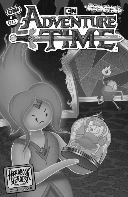 Out of the frying pan and into the Fire Kingdom! Hot on the trail of a mechanical imposter, Finn and Jake find themselves embroiled in yet another case of mistaken identity when Flame Princess accesses them by stealing her mother's crown. And speaking of crowns—will Marceline's efforts to reach Simon Petrikov finally pay off? Or is Ice King too far gone?! Written by cartoonist and animator Nick Winn (Bloody Mary) and drawn by our next stellar artist, Agustin Morales (Go Go Proton, Megahrtz)—plus another mathematical backup story—'Handbook Heroes!' continues here!