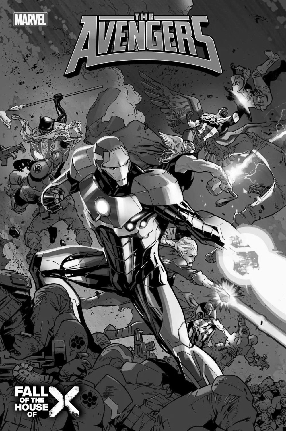 The FALL OF X comes for Earth's Mightiest heroes! The Avengers have hung in space over the Earth, a sword of Damocles over Orchis, for too long. But knowing they had only one chance to strike, they waited while Iron Man prepared. Now, on his signal, it is time, and the Avengers only know one way to strike: hard!