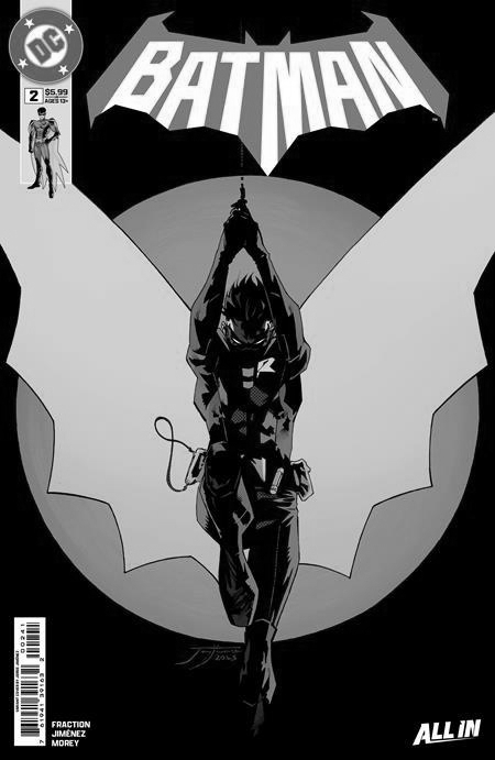 ROBIN GETS HIS OWN DARK NIGHT AS FRACTION & JIMENEZ TURN UP THE HEAT ON THE DYNAMIC DUO! Injured, cuffed, and tossed in the back of a GCPD paddy wagon with a dozen uncuffed and violent criminals, Robin (Tim Drake) will have to use everything he's learned from the Dark Knight if he hopes to survive his own dark night. Will Batman arrive in time to help him, or will this mission change the way the city and the GCPD view the Dynamic Duo forever?