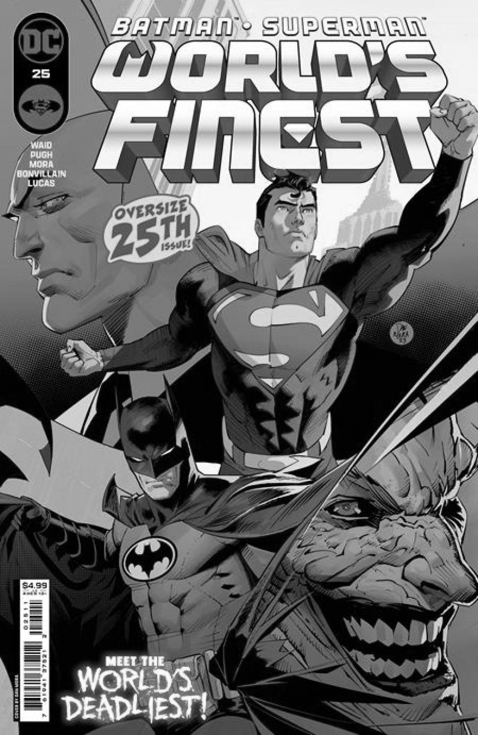 Join Batman and Superman as the World's Finest team celebrates 25 issues of World's Finest! This oversized special issue takes our heroes around the DCU and beyond--with a special lead story that will at last showcase the first meeting between The Joker and Lex Luthor. The World's Finest villains form an unholy alliance and will send chills down the spines of the DCU Heroes forevermore! PLUS: Spinning out of the events of the World's Finest Annual, Doom-Mite strikes and points the way to the next World's Finest epic!