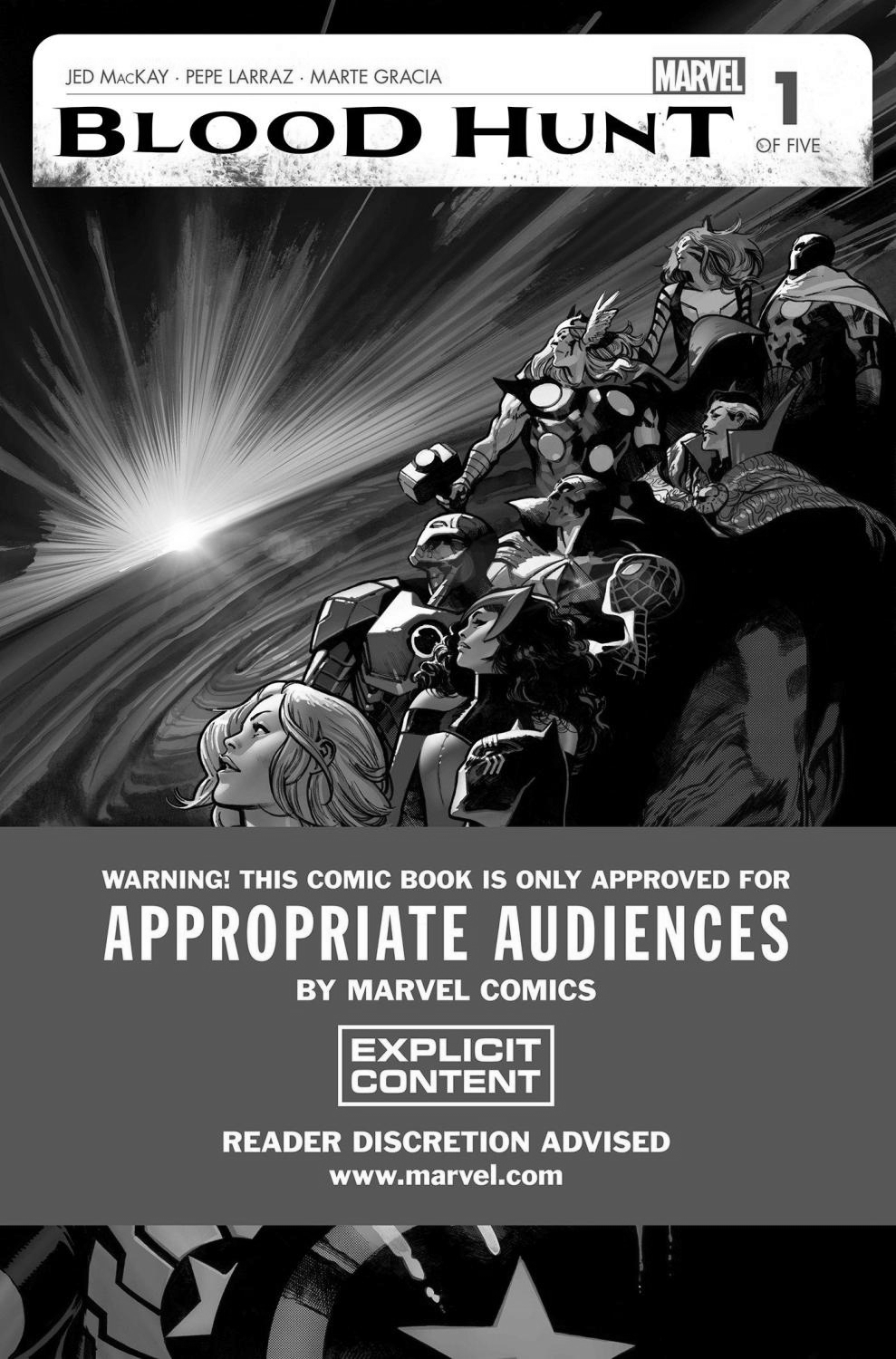 THERE WILL BE (MORE) BLOOD! EXPANDED AND UNEXPURGATED - AND POLYBAGGED FOR YOUR PROTECTION - THE RED BAND EDITION OF BLOOD HUNT #1 CONTAINS VARIANT PAGES OF UNEXPURGATED MATERIAL THAT ARE TOO EXPLICIT FOR THE REGULAR EDITION! Please note: The digital codes in these BLOOD HUNT Red Band Editions will unlock the regular versions of the BLOOD HUNT series digitally.