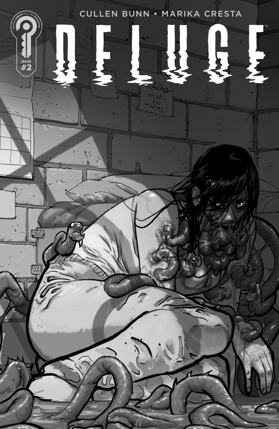 The rain isn’t stopping, and the women incarcerated in the Sieverville Correctional Facility are starting to realize that no one is going to let them out, and no one is coming to rescue them either. The guards are useless to defend them against the incoming flood, and even more so when it comes to the monsters lurking in the depths.Groups of prisoners are starting to break off on their own looking for a way out, but they can’t be sure what they will find hiding around each corner. If it’s not the deadly creatures the storm has stirred up from the muck, then it’s the muck they face every day, the ghosts they carry with them, which themselves now seem to be made real.Master horror writer Cullen Bunn (The Sixth Gun, Harrow County) continues his suspenseful story of the dark secrets that get uncovered when all barriers are washed away. Joining him are artist Marika Cresta (Dr. Aphra) and colorist Ronda Pattison (TMNT), all topped off with a creepy cover by Riley Rossmo (The Moon Will Follow Us)!