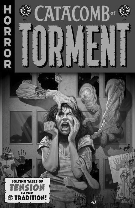 Happy Ghoul Year! Any resolutions? HOW ABOUT READING MORE EC COMICS?! You're in luck—the Tormentor has been saving a blood-drenched new issue of CATACOMB OF TORMENT just for you! The centerpiece of this month's joyously depraved New Year's revelry: Join writers Meghan Fitzmartin (Tim Drake: Robin), Sarah Gailey (Buffy the Vampire Slayer), and Greg Pak (World War Hulk) as they raise—and drop!—the guillotine on their terrifyingly talented artistic collaborators, including Eric Battle (Hardware), Tom Fowler (The Books of Magic), and Sami Kivela (Abbott)! Heads will roll! (That's what we were hoping for, heh heh!)