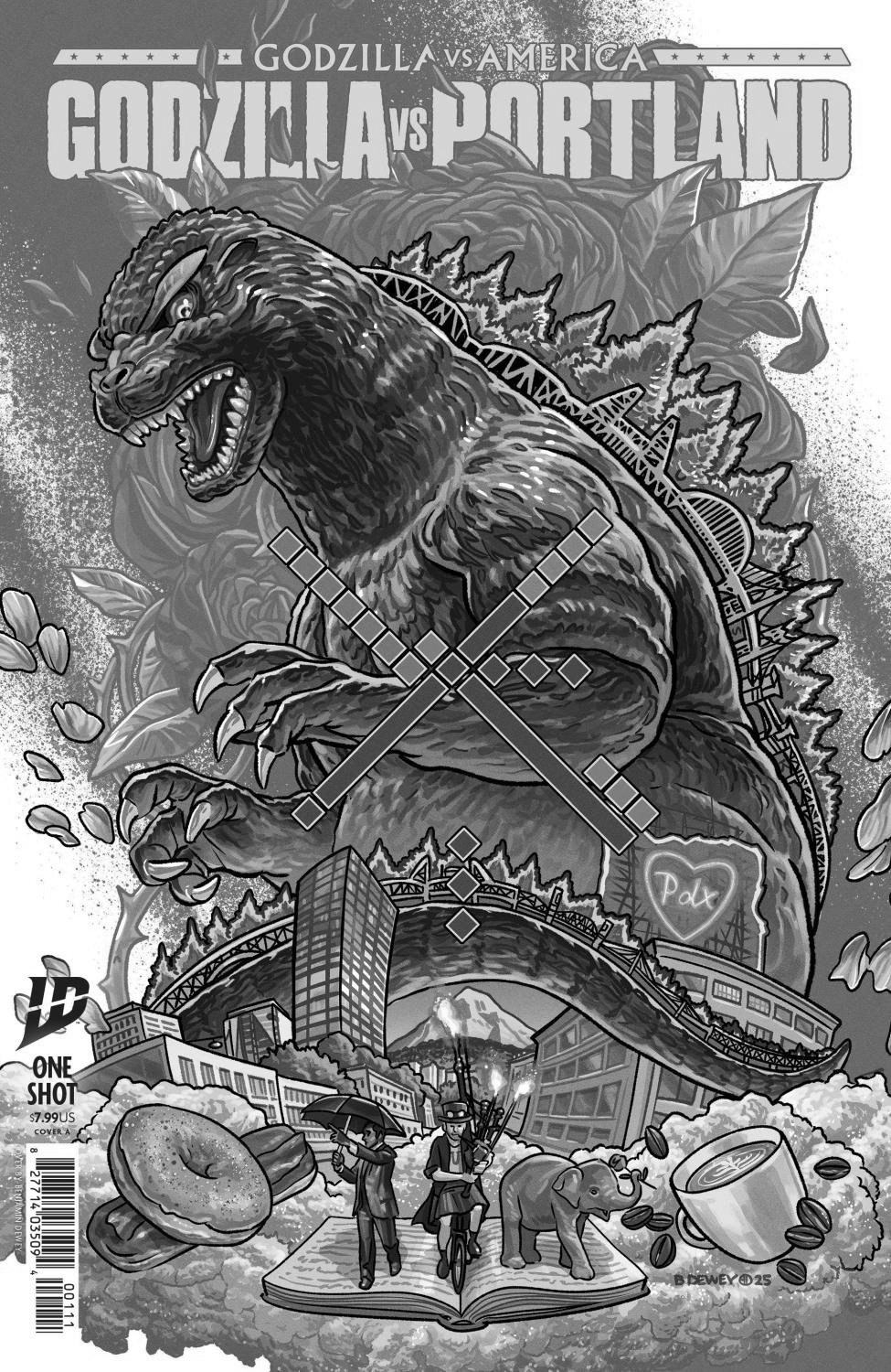Godzilla continues its USA sight-smashing tour! Next stop: Portland. Specifically, Portland, Oregon! (You're safe, Maine... for now.) Rising out of the fog of the Pacific Northwest, Godzilla is about to turn Stumptown into Stomptown. Oregon? More like Ore-gone. Rip City? More like... actually, that one already works.Join a star-studded cast of Portland-based comic book creators, including Mark Russell (Superman: Space Age, Fantastic Four: Life Story), Caitlin Yarsky (Black Hammer: Reborn, Wonder Woman), and many more!You're going to be less concerned with keeping Portland weird and more worried about keeping Portland standing when Godzilla comes to visit.