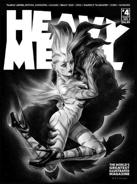 Post Apocalyptic Winter: As winter settles in and the new year begins, Heavy Metal #4 delivers a landmark issue filled with climactic finales and daring new visions. Enki Bilal concludes the first major arc of his acclaimed BUG saga, where politics, technology, and surrealism collide in unforgettable ways. Michael Conrad and Ilias Kyriazis bring Millstone to the close of its opening arc, weaving myth and destiny into a fateful conclusion. Sergio Gerasi's reimagining of Valentina reaches its dreamlike finale, and Leah Moore, John Reppion, and Anna Morozova conclude the first chapter of Taarna, cementing her place as the eternal cosmic warrior. The magazine also continues its bold ongoing series, as Charley and Vlas Parlapánides with Marco Failla push Ink into darker territory and John Stanisci returns with a fierce new installment of Gladiatrix, where honor and brutality collide in the arena. Adding to this landmark lineup are three speculative shorts that venture into unsettling visions of the near future, stories where technology, identity, and control blur into haunting reflections of our own world. Baby Trigger by Mark McCann and Luis Guaragna, Sub Body by Homero RÃÂos, and Face Value by Flops each deliver a provocative glimpse into futures just around the corner. Heavy Metal #4 stands as a milestone, an essential edition where defining arcs reach their climax, ongoing sagas intensify, and new visions chart the shadows of tomorrow.
