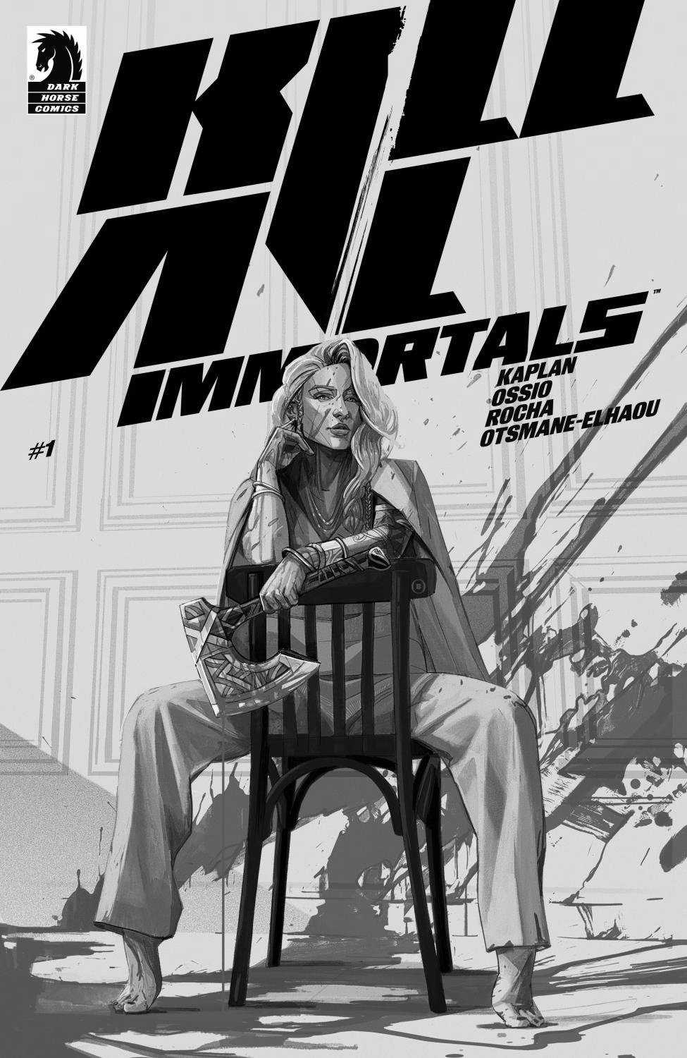 EXPANDED to 28 Pages of Story for $3.99! A thousand years ago, Viking explorer Erik the Red and his four adult children discovered a mysterious source of immortality. Now, in our modern world, they are an enigmatic billionaire family with a powerful banking empire. But when Erik’s only daughter, Frey Asvald, seeks to finally be free from her family’s influence, she must be prepared to reveal their supernatural secrets and confront her well-trained siblings in a deadly and epic struggle for power. Succession meets Jon Wick…with immortal Vikings. Get ready for a bloodthirsty immortal fight like no other, with comic creator Zack Kaplan (Mindset, Break Out, Port of Earth), artist Fico Ossio (Action Comics, Star Wars, No One Left To Fight), rising star colorist Thiago Rocha and Eisner nominated letterer Hassan Otsmane-Elhaou. "Making a comic is not an immortal endeavor, but we’ve taken some extra time to make sure Kill All Immortals is bigger, bolder, bloodier and more breath-taking than ever. With rising star Thiago Rocha now on colors, and with an expanded Issue #1, get ready for the summer’s most dangerous new series. Sharpen the axes, Kill All Immortals is coming."-Zack Kaplan