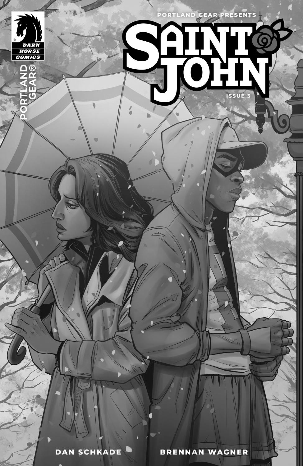 Tori and Saint John are pushed to an emotional fission point as flash floods tear through an eastside neighborhood. While John races against time to pull vulnerable citizens from the deadly rising water, Tori discovers Felix Hodge’s true vision for the future of Portland. A distinctly PDX miniseries from Eisner-nominated cartoonist Dan Schkade (Lavender Jack, The Spirit) and Portland native creator Brennan Wagner (Grendel, Batman), produced with—and featuring the fashion of—Portland Gear.