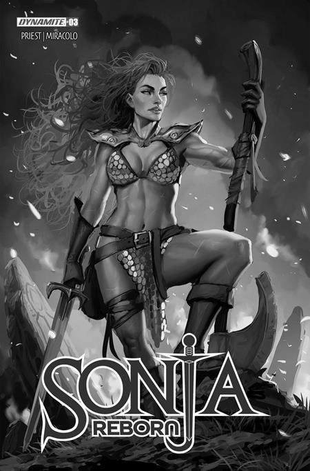 WHO MADE WHO? Is Maggie Sutherland hallucinating being Red Sonja, or is Red Sonja suffering from a delusion that she is Maggie Sutherland? In either case, the She-Devil with a Sword is unprepared for the visceral experience of her first barbarian bloodletting when her mercenary troop clashes with a Pict war party. The resulting panic attack prompts an intervention from the proto-deity known as The Light — but what Maggie learns about Sonja's past and her own future isn't exactly reassuring! The multiple-personality team of CHRISTOPHER PRIEST and ALESSANDRO MIRACOLO dig into the all-new She-Devil's psyche in Sonja Reborn #3 — aided by dramatically diagnostic covers from STJEPAN SEJIC, STUART SAYGER, CHAD HARDIN, GREG LAND, and cosplay by ANI-MIA!