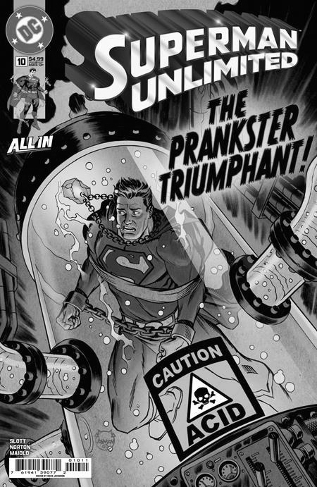 DIE LAUGHING: PART TWO! It's said that the sun is always shining on the city of Metropolis...but lately a shadow has fallen. This shadow has a name, and it's on the lips of the terrified citizens of the city of tomorrow tonight...it's the horrible new form of the Prankster! The all-new, mysterious Prankster was the deadliest assassin in the DC Universe, someone with a perfect record of kills...until Superman saved one of his victims. And that makes the Man of Tomorrow his next target.