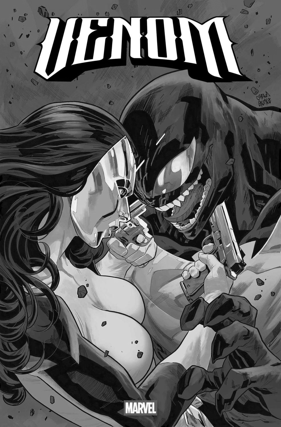 MASQUE MAKES HER MOVE! Madame Masque wants Venom out of her way - one way or the other. And somehow, she's found out who's under the goo. With all the power of A.I.M. in her golden glove, she's turning the screws on the world's strangest roommates...but will the goosome twosome squish under the pressure? Or is Madame Masque waking up the monster within?
