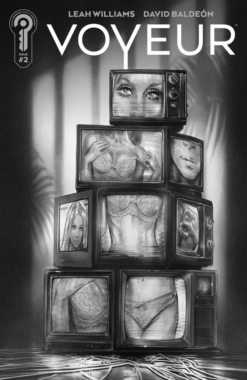 The tables are turning, as the observer becomes the observed!Now that Madeline has figured out who is spying on her, and that the security guard Rook is not exactly who he tells everyone he is, her vacation has become a whole other experience entirely. What had been a trip of self-reflection and grieving is now a chance to explore herself even further. How far will she go with this man, both in the bedroom and outside of it? Rook’s scheme to rob the extravagant resort of all its art may just be the kind of adventure Madeline has been looking for!Voyeur is a sexy, exciting thriller for readers who like their romantic dramas with a smidge of danger and whole lot of swagger. Join writer Leah Williams and David Baldeón, the team behind X-Factor and Power Girl, for the comic book excursion you’ll never want to end! Plus superstar artist Joëlle Jones (Catwoman, Lady Killer) delivers a seductive main cover tailormade for this steamy heist!