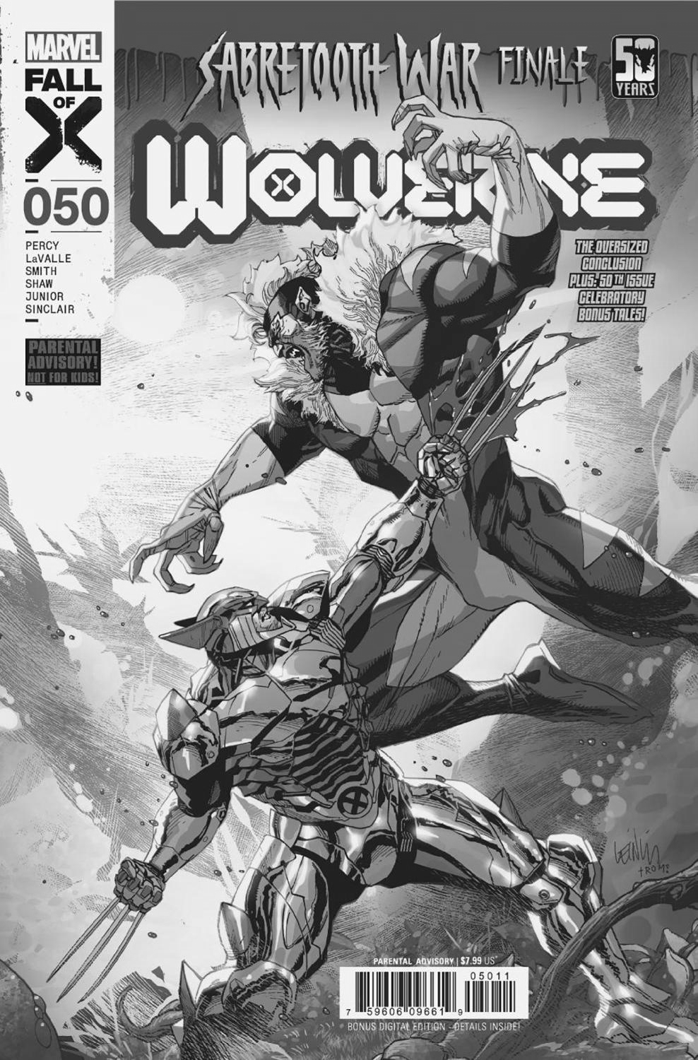 CREED VS. LOGAN - THE FINAL SHOWDOWN! It's all come down to this: the final battle between WOLVERINE and SABRETOOTH. The Sabretooth War concludes in the way it began - a violent, bloody battle - but WHO will be left standing? Plus: Special short stories celebrating fifty issues of this run and 50 YEARS OF WOLVERINE, from legendary Logan scribes including Larry Hama and art from Daniel Picciotto, as well as a final send-off from Benjamin Percy and Javi Fernández, and some special SURPRISES!