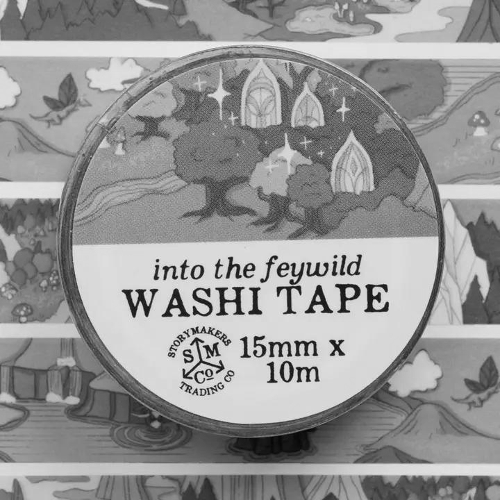 For everyone who dreams of travelling to other planes and wandering deep into the Feywild. Use this washi tape for decorating maps, campaign notes, or journals! Add it to your stationery displays for some fun, fantasy flair.Washi tape is a thin decorative paper tape similar to masking tape. Perfect for decorating bullet journals, planners, campaign notebooks, craft projects, and whatever else you could imagine.- 15mm washi tape- 10m length each roll