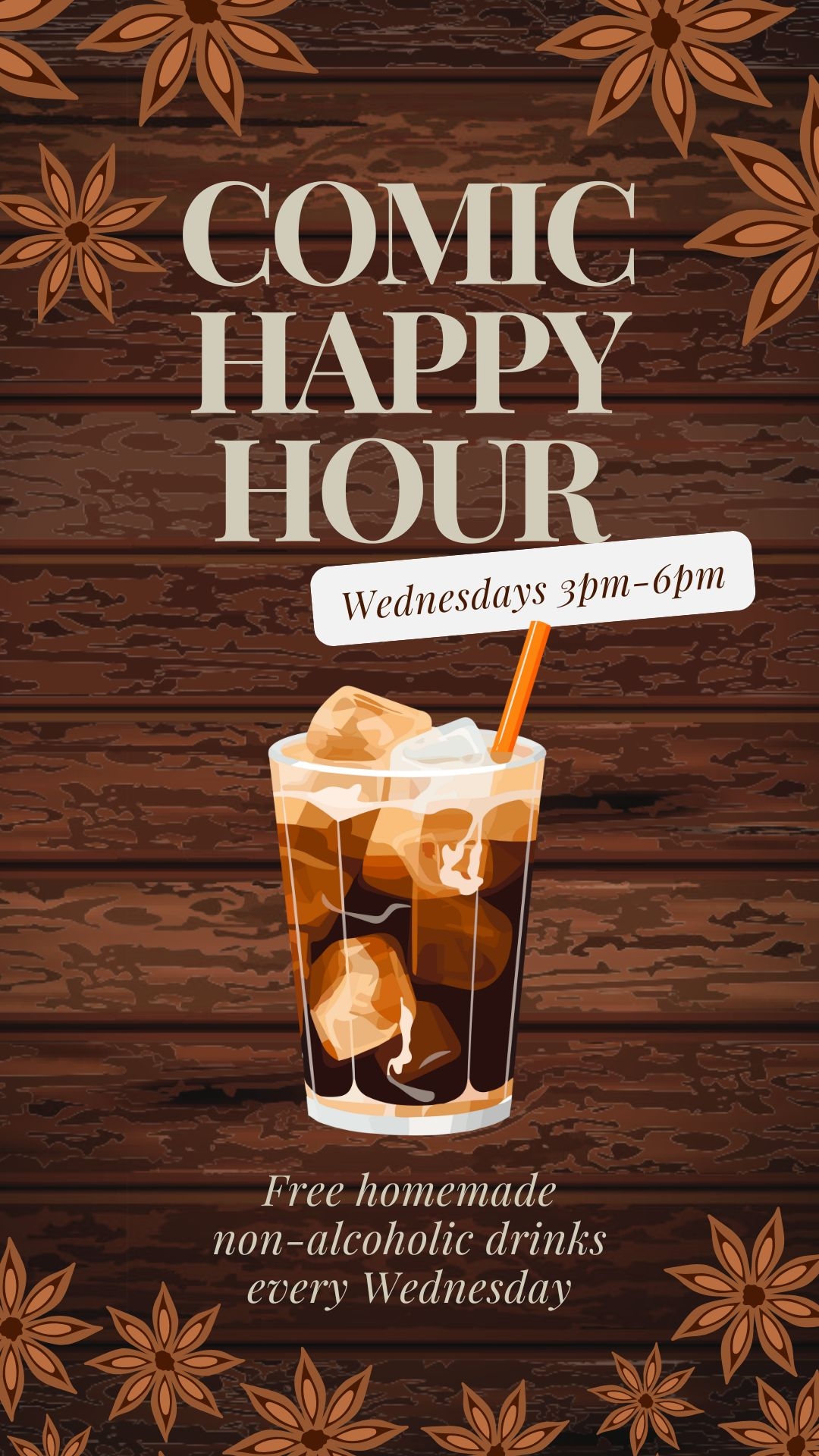 Comic Happy Hour Comic Happy Hour Comics Event Celebrate New Comic Book Day with free non-alcoholic beverages every Wednesday! Location: Goblin Market, 2868 N Lincoln Ave, Chicago IL 60657 No upcoming dates for this event