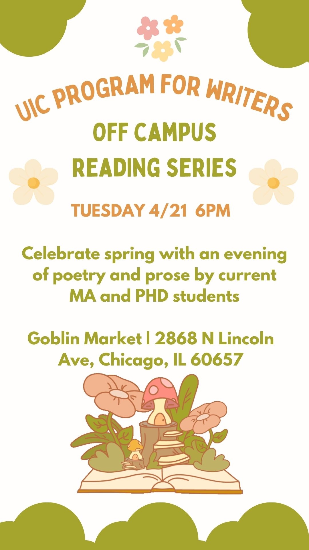 Celebrate spring with an evening of poetry and prose by current MA and PHD students in UIC's writing program!