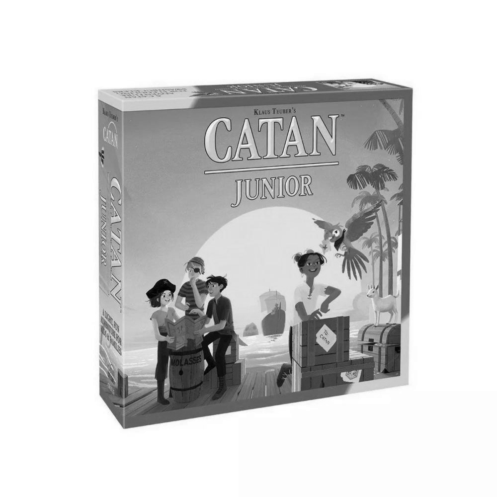 Explore the Seas! Catan: Junior introduces a modified playing style of the classic game giving younger players the opportunity to experience the world of Catan! Designed for players as young as 5 and is a perfect introduction to the Catan series of games for kids and families. Catan: Junior takes place on a ring of islands where 2 to 4 players build hideouts, and the mysterious Spooky Island, where the Ghost Captain lives. Each island generates a specific resource: wood, goats, rum or swords and players can acquire gold. You use your resources to build ships, hideouts or get help from Coco the Parrot. Just watch out for the dreaded Ghost Captain! Be the first player to control seven pirate hideouts and you win the game!"