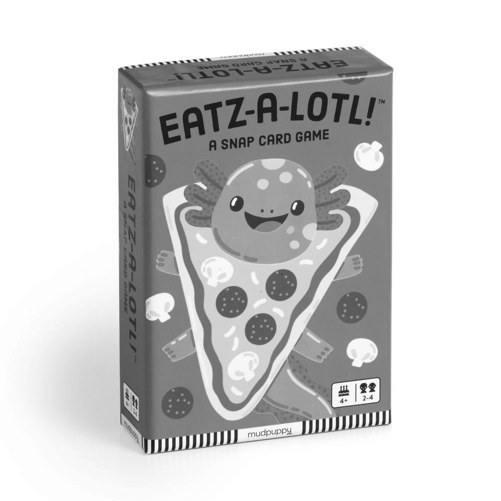 Eatz-a-lotl by Mudpuppy is a punny card game that features an adorable axolotl, the giant salamander that is native to Mexico. Our card game is a take on the classic game of Snap – a fast-paced matching game suited for children of all ages. Players try to be the first to spot a match and shout “Eatz-a-lotl!” to collect cards.