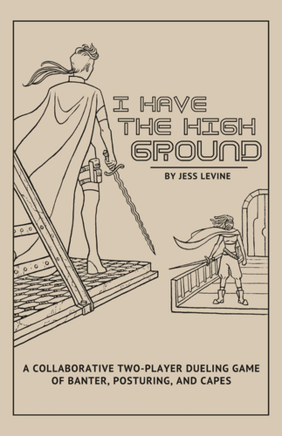 But do you know what’s sexier than combat? That slower, higher tension duel that occurs before any damage is done—before any blow is even struck. The duel of word and wit, of melodramatic motion and threatening maneuvers. I Have the High Ground is a short, collaborative tabletop roleplaying and storytelling game for 2 players about that kind of duel. It's GM-less and genre-neutral, and takes 1-2 hours to play. You can hear it played on Party of One, The Neon Caster, and Chicks with Dice, read a review in Cannibal Halfling Gaming, or watch this short video by Philippa Mort for an overview of the game!