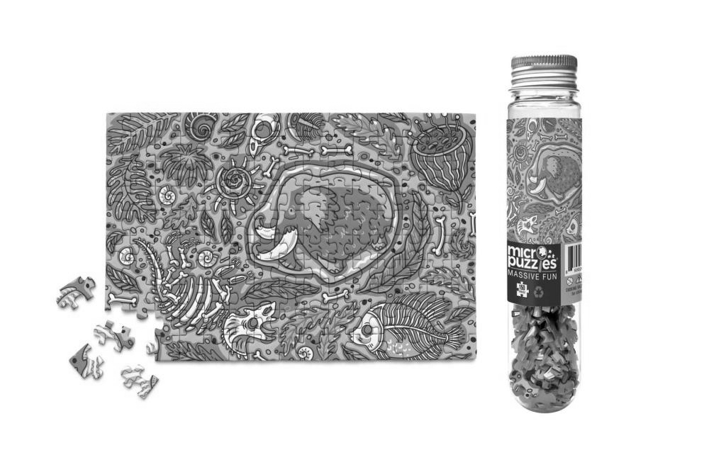 There is nothing more fun than digging through the pieces of these adorable fossils. Your adventure features a Blue Mammoth, Stegosaurus and the dreaded P-Rex (the little known, happier puzzle cousin of the Tyrannosaurus Rex). 150 pieces - finished size is 4"x6"