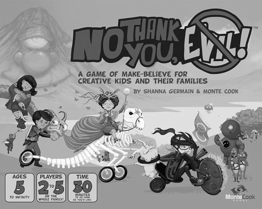 Whereas conventional games constrain players’ actions, No Thank You, Evil! sets kids’ imaginations free with options limited only by their creativity. The players and Guide create a story as they work together to make their way through the adventure!