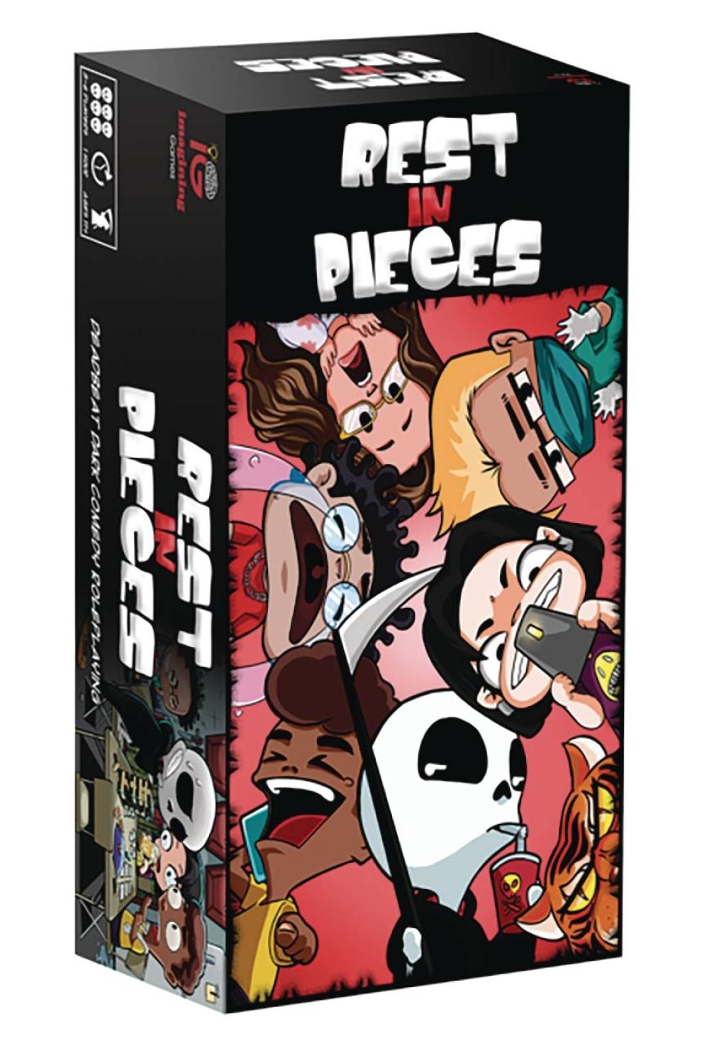 Rest in Pieces is a dark comedy tabletop roleplaying game inspired by the misadventures, cartoon logic, and over-the-top characters of slacker sitcoms like The Grim Adventures of Billy & Mandy, the Regular Show, Rick & Morty, and It’s Always Sunny in Philadelphia.