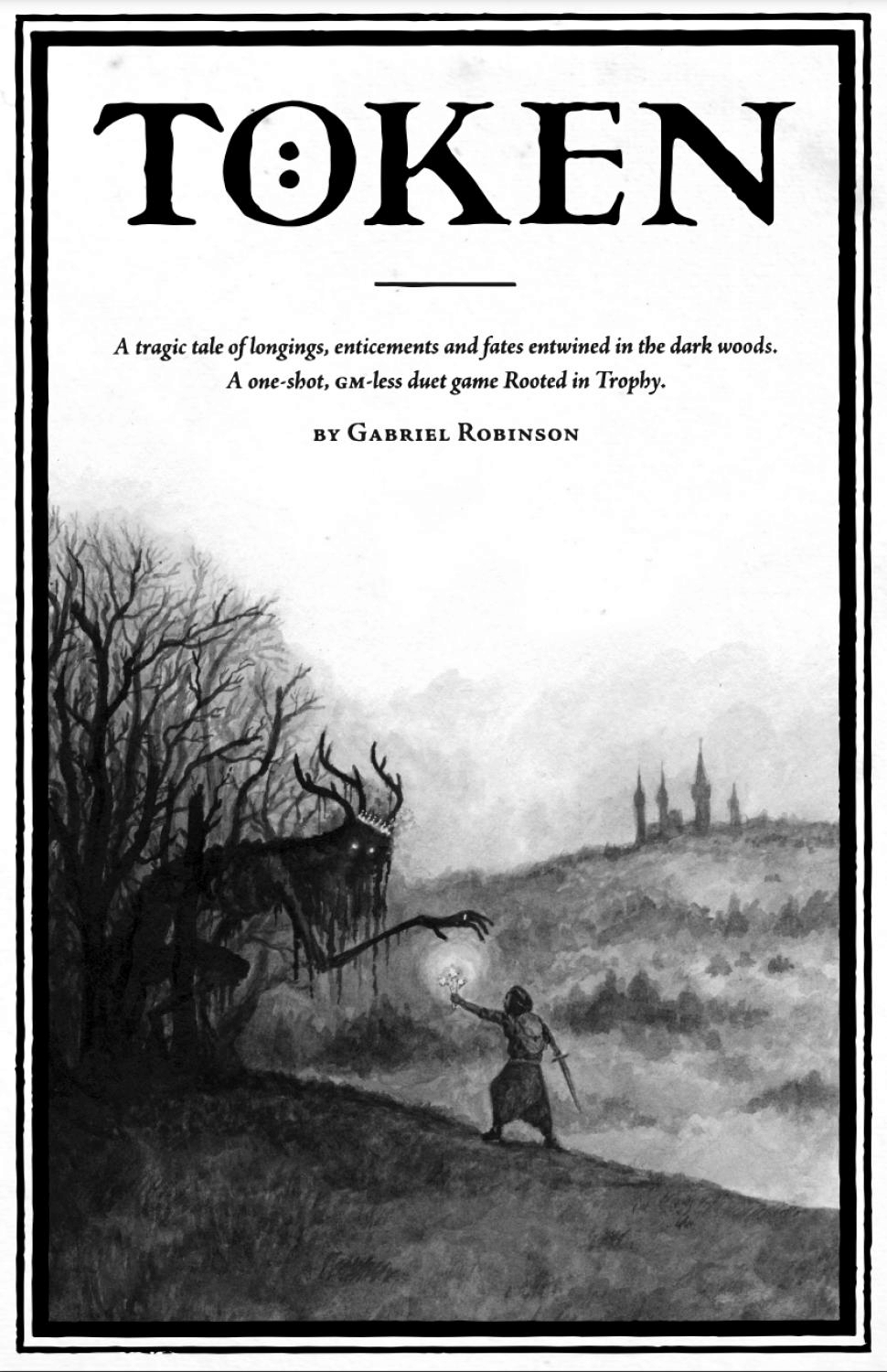 TOKEN is a collaborative game Rooted in Trophy: using a rules-light, narrative-rich framework to encourage risky choices, and evocative storytelling.