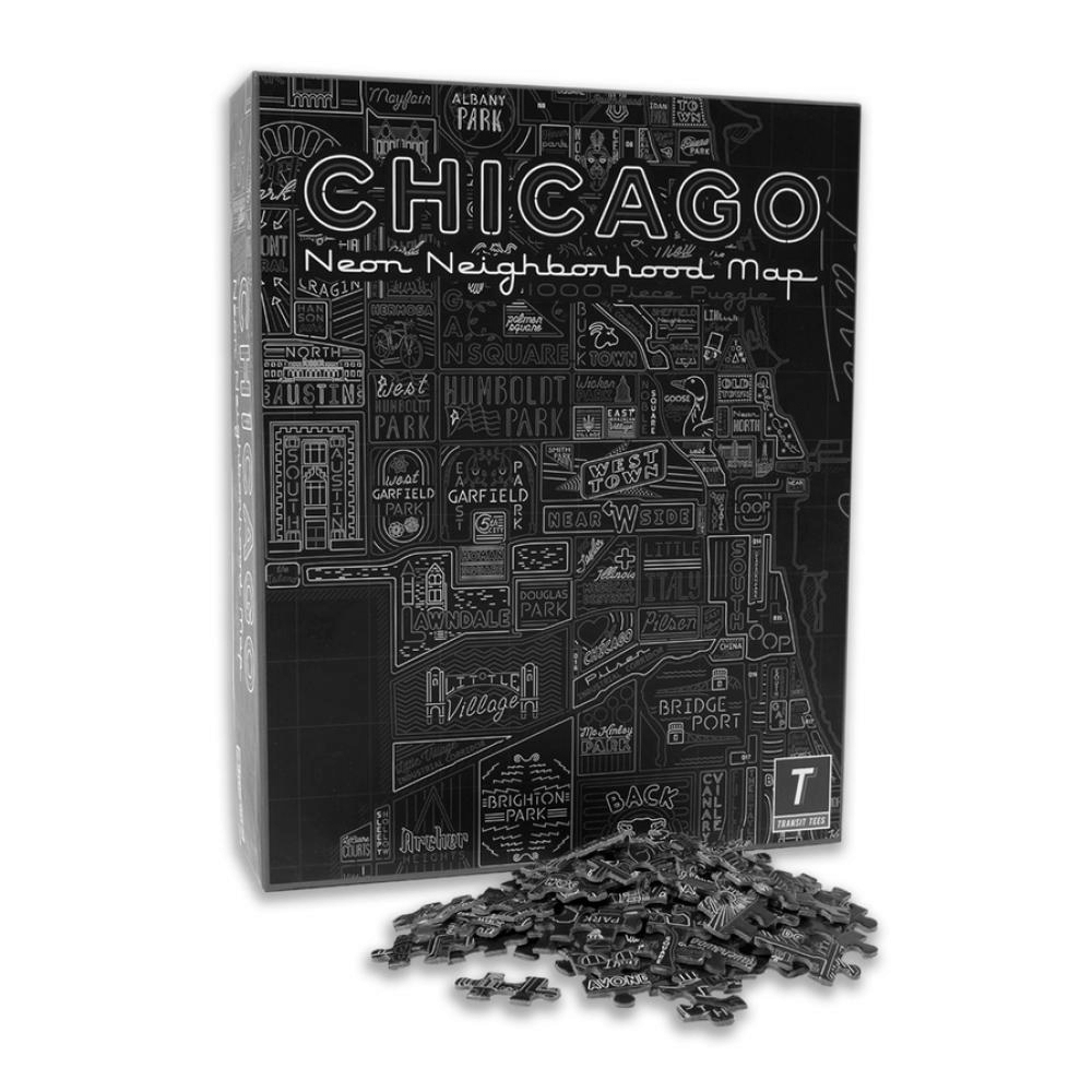 Get notified of new releases like Transit Tees Jigsaw Puzzle: Neon Neighborhood Map of Chicago (1000 pcs)