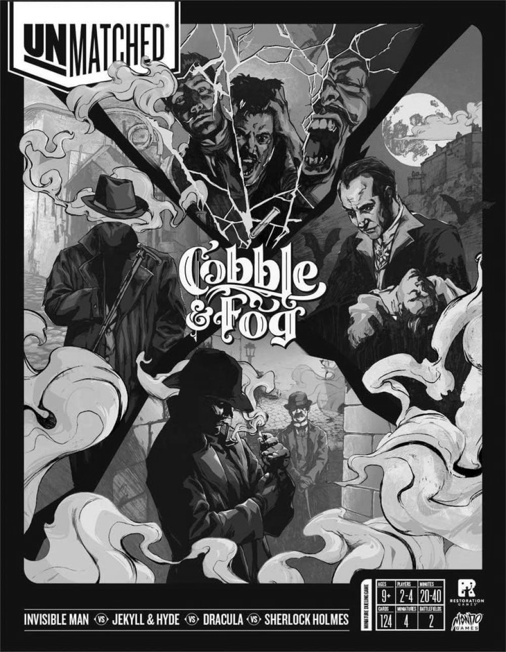 Unmatched: Cobble & Fog features four new heroes for the Unmatched system. Invisible Man uses fog to dart around the board and strike without warning. Sherlock, with the trusty Watson by his side, schemes and calculates to ensure victory. Dracula and the sisters slowly drain you of your power. Jekyll & Hyde uses the former's cunning and the latter's brute strength to win the day.