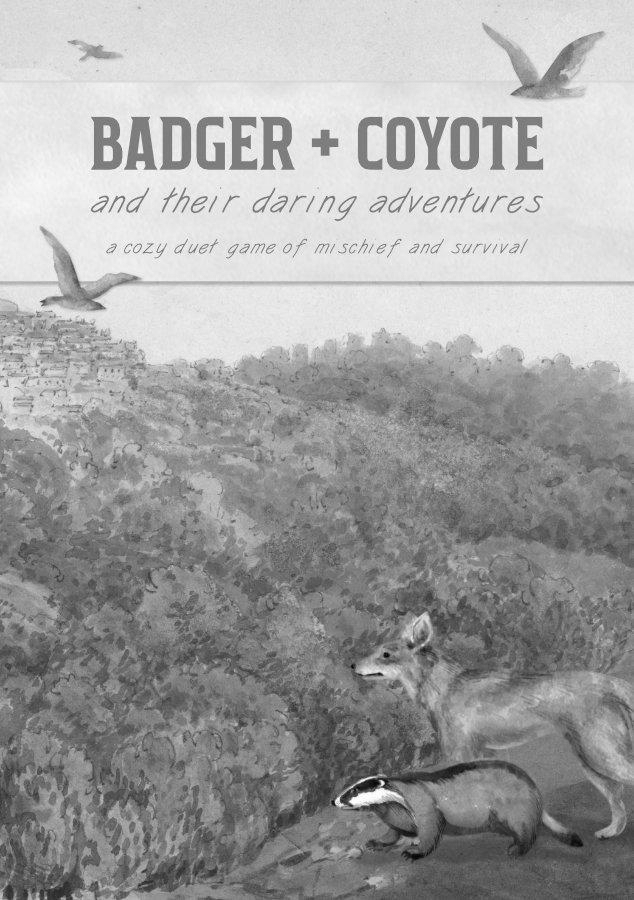 A Two Player Roleplaying GameBadger + Coyote and their Daring Adventures is a cozy, asymmetrical, two-player TTRPG which contains:• Beginner-friendly rules to get into mischievous fun• 42 total adventure hooks• Tips on how to play as a badger or coyote character• How to play GMless, two player games• Two play styles (Discover and Share)• 8 Story Twists to choose from to surprise your friend • Based on biologist's research on how this lovable duo interact with the other in the wild Before play, you'll select your character, pick or imagine your adventure, and set your day's goals. During play, players take turns narrating the scene, acting on behalf of their character, and working towards their goals while each action fills Badger and Coyote's day with mischief and miscommunication mayhem! Daring AdventuresWhether they're helping reunite bear cubs with their family, solving the mystery of poisoned birds, or outsmarting poachers threatening their woodland friends, Badger and Coyote prove that with teamwork and quick thinking, any challenge can be overcome.Their Daring Adventures gives players 42 adventure hooks to launch into their story. While most sessions of Badger + Coyote can be played in an hour, some adventures are ripe for larger, multi-session games.Use the adventure hooks as-is or customize them to create your own unforgettable tales. With settings ranging from mountain tops with hidden springs to abandoned farms full of conspiracy, there's an adventure for every mood. Multiple Ways to PlayAdventures can be played two different ways, Share or Discover, depending on if someone wants to lead an adventure for the other to discover, or share the worldbuilding together.Finally, the book contains story twists you can quietly weave into the story - revealing the twist at just the right time! Each with memorable names like "I'm The Problem, It's Me", and "The Dream We Share". The Second Edition is a fully reworked game:• Clarified rules• Updated player tips, how to roleplay a Badger or Coyote• New introduction to playing duet TTRPGs• 20 new illustrated scenes throughout the book!• 40 new adventure hooks for you and partner to go on• Includes 2 double-sided character sheetsA5, 44pg, full color softcover book with 2x A6 character sheets