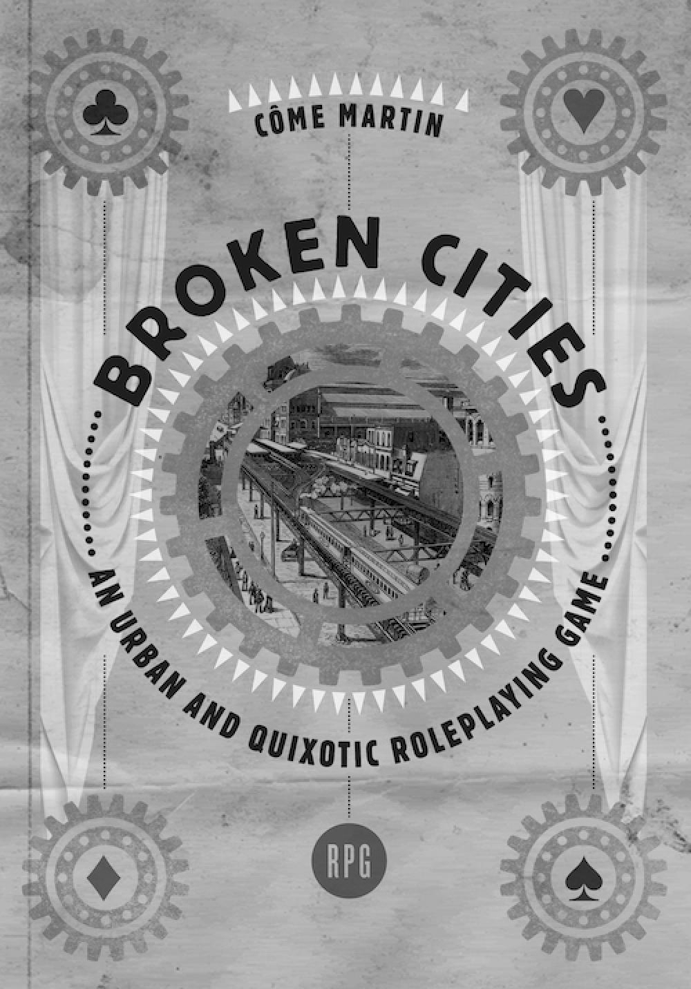 BROKEN CITIES is a diceless, GMless role playing game in which players take the role of Travelers coming to a City with adventurous goals in mind, while the City wants to convince them to go through the sacrifice needed to fix it. Its base version requires 2 to 5 players (though the game also includes a solo variant), for one-shots of 3-4 hours requiring very little preparation.