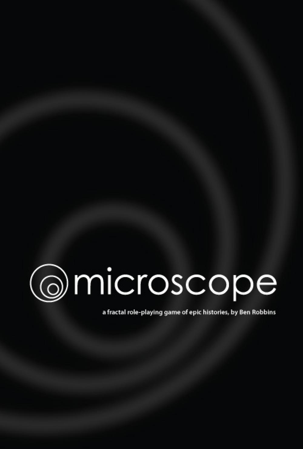 These are all examples of Microscope games. Want to explore an epic history of your own creation, hundreds or thousands of years long, all in an afternoon? That's Microscope.