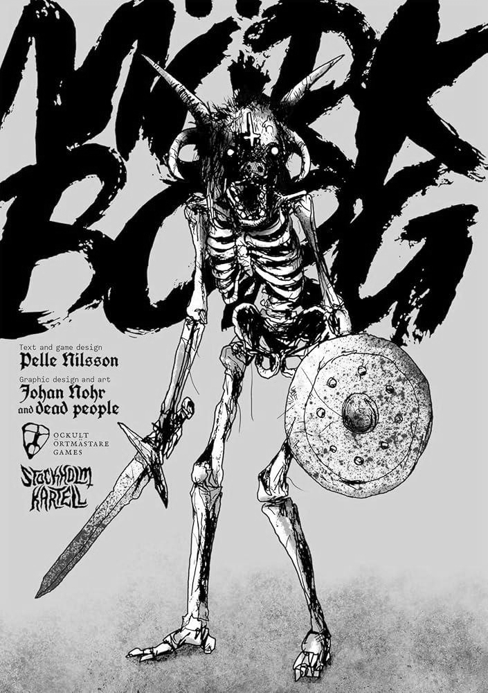 MÖRK BORG is a pitch-black apocalyptic fantasy RPG about lost souls and fools seeking redemption, forgiveness or the last remaining riches in a bleak and dying world. Who are you? The tomb-robber with silver glittering between cracked fingernails? The mystic who would bend the world’s heart away from it’s inevitable end? Confront power-draining necromancers, skulking skeletal warriors and backstabbing wickheads. Wander the Valley of the Unfortunate Undead, the catacombs beneath the Bergen Chrypt or the bedevilled Sarkash forest. But leave hope behind – the world’s cruel fate is sealed, and all your vain heroic efforts are destined to end in death and dismay. Or are they?