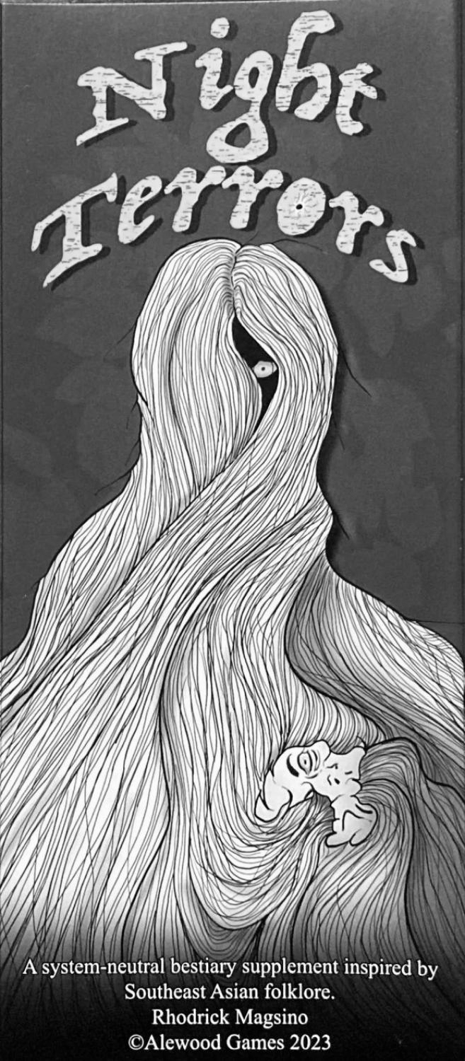 This double-sided full color tri-fold pamphlet features 5 Aswang inspired by Southeast Asian folklore and the dark consequences of colonization. Each creature profile includes evocative illustrations and rules/flavor text to help bring depth to your terrifying night encounters!
