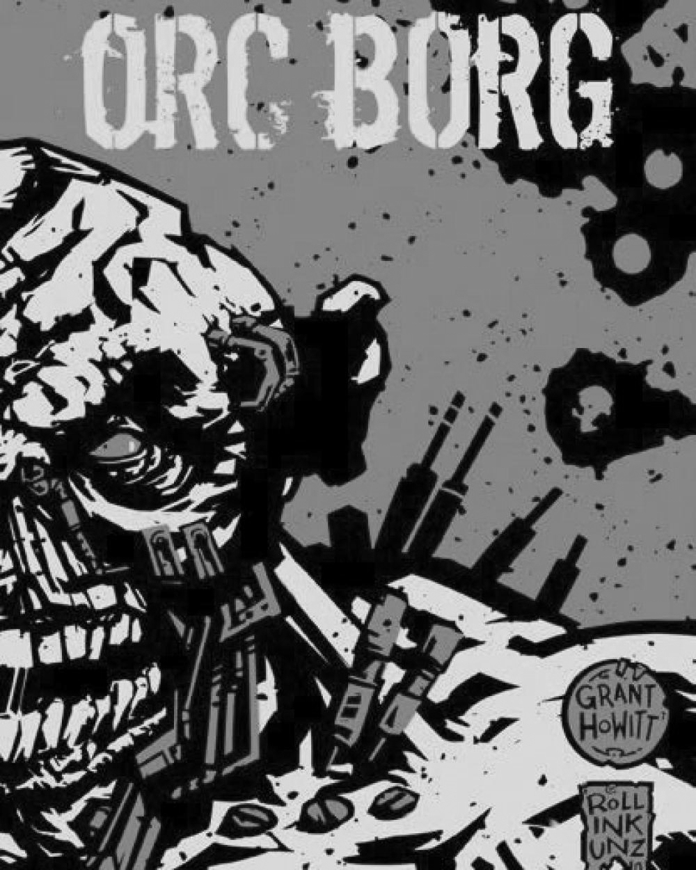 Written by Grant Howitt and illustrated by ROLLINKUNZ, ORC BORG is loud, over-the-top and obnoxious. It uses the MÖRK BORG rules-set to make easy-to-run game set in the chaotic Derelict, and includes (but is not limited to):